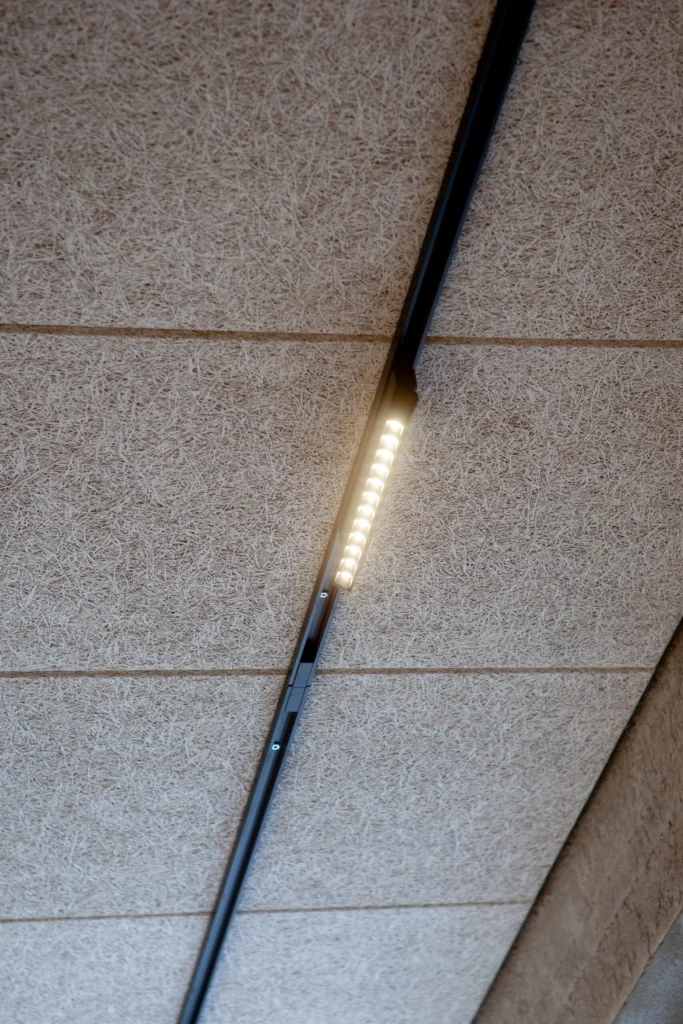Ceewood-platene bidrar til et behagelig og funksjonelt lydmiljø, samtidig som de gir rommet karakter og visuell dybde. Løsningene leveres i et bredt utvalg av strukturer, formater og farger, noe som gir stor designfrihet for arkitekter og byggherrer.